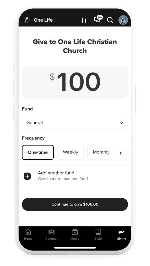 With the One Life app, giving is easier than ever. Make your gift recurring, use Apple Pay, and more—all right in the app!